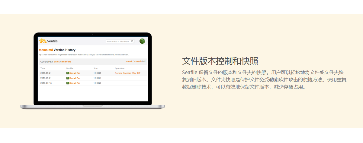 Seafile之中用户可以快速的进行文件部署,在这里用户将文件上传到云端之后将会以以 Markdown 格式保存 Wiki 文档,在该格式下的文档用户可以直接进行编辑,非常方便,并且编辑后可以迅速锁定。