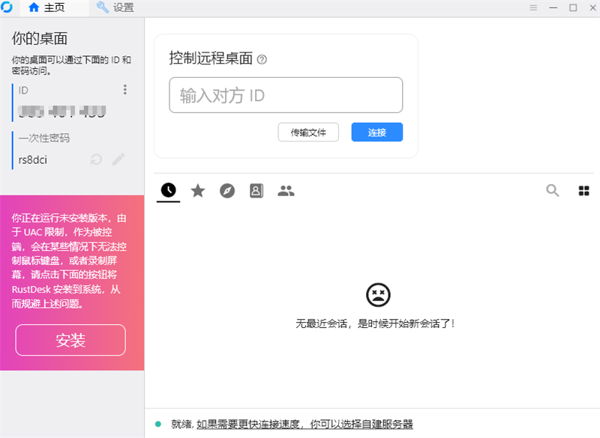 RustDesk电脑版是一款简单易用且安全高效的远程桌面软件,能够适用于各类远程控制和技术支持等场景,RustDesk最新PC版支持跨平台操作,提供端到端加密和自托管功能,提供文件传输、低延迟等功能,能够满足用户的日常所需。