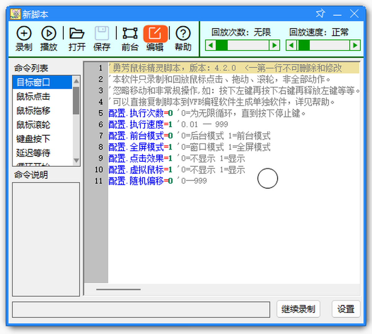 勇芳鼠标精灵是一款非常好用的鼠标工具,勇芳鼠标精灵电脑版之中用户可以在软件之中进行各种鼠标的回放,可以帮助用户进行鼠标的录制内容,可以忽略移动以及非常规操作,可以帮助用户精准的做好脚本的重点录制。