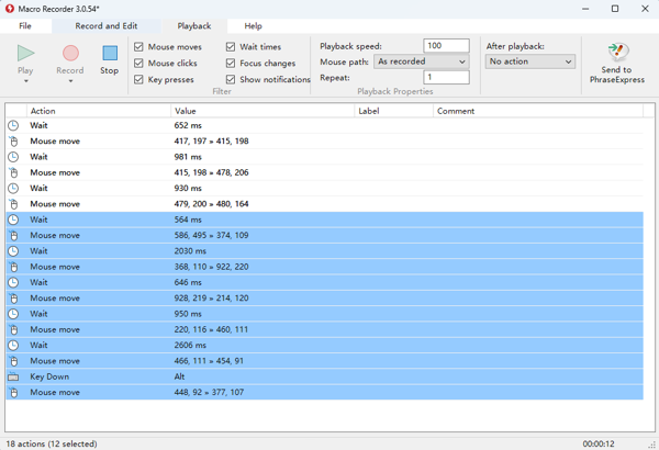 MacroRecorder电脑版是一款功能强大的鼠标记录和自动化工具,MacroRecorder客户端能够准确捕捉用户的鼠标移动、点击和其他操作,记录完成后,用户可以随时播放宏,以便自动执行之前记录的操作,可以帮助用户记录鼠标的移动轨迹和点击操作,从而实现重复性任务的自动化。