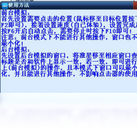后台鼠标连点器非常适合用来网络游戏、活动抢票、抢购等等多个场景,在这里快速的进行点击可以更快的几率来获得目标的所有权,毕竟现在很多的抢购物品,都是一秒钟就抢购完毕,非常难抢。