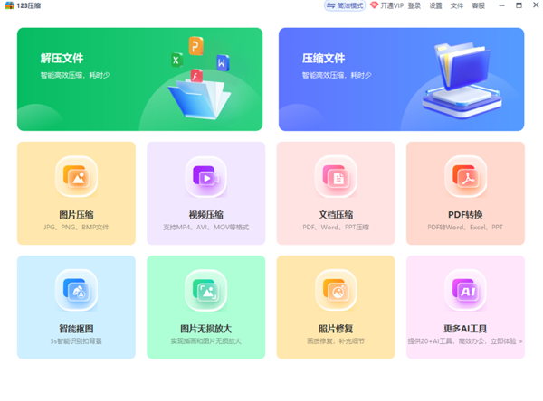 123压缩电脑版是一款功能强大的解压缩工具,123压缩PC客户端支持常见的压缩格式,用户可以轻松处理各种文件压缩需求,能够大幅度减小文件体积,同时保持较高的压缩速度和较低的CPU占用,支持将大文件压缩为多个小分卷,便于存储和传输。