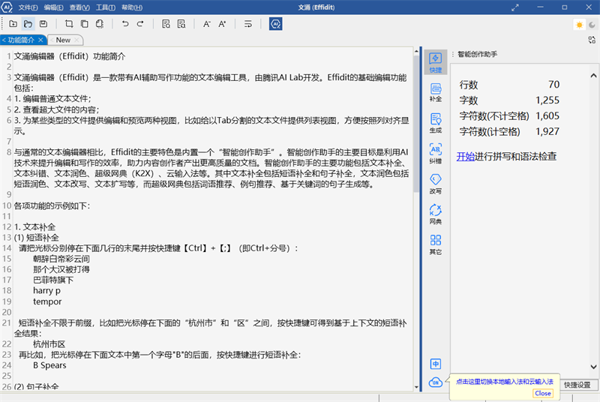 Effidit 2025最新版是一款简单易用的Ai智能软件,能够帮助用户提供非常智能的自动化功能,Effidit电脑版能够帮助用户轻松创建获取更详细的信息内容,可以根据用户输入的关键词或主题,自动生成与之相关的文章、段落或橘子。