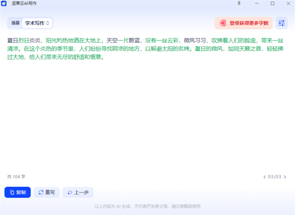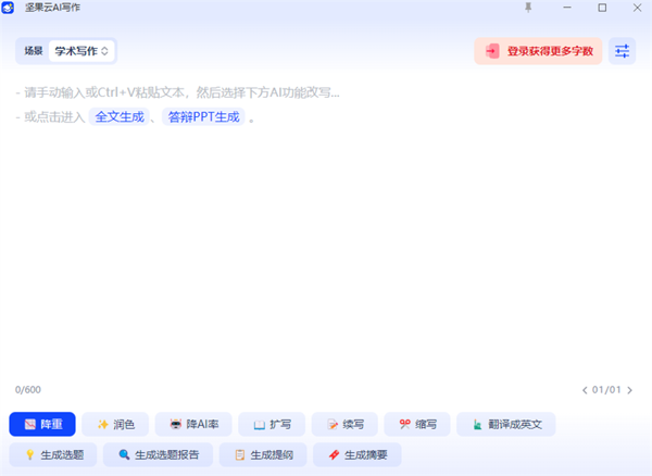 坚果云AI写作电脑版是一款功能强大的写作辅助工具,坚果云AI写作2025最新版中用户只需提供简单的关键词或主题,软件能够快速生成相关的文章、段落或章节,提供大致方向,AI会根据语境自动补充详细内容,帮助用户减少写作的时间与压力。