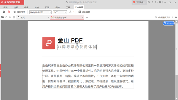 在编辑功能方面,金山 PDF 表现极为出色,赋予用户如同编辑 Word 文档般的自由度,能够轻松对 PDF 中的文本与图片进行修改。