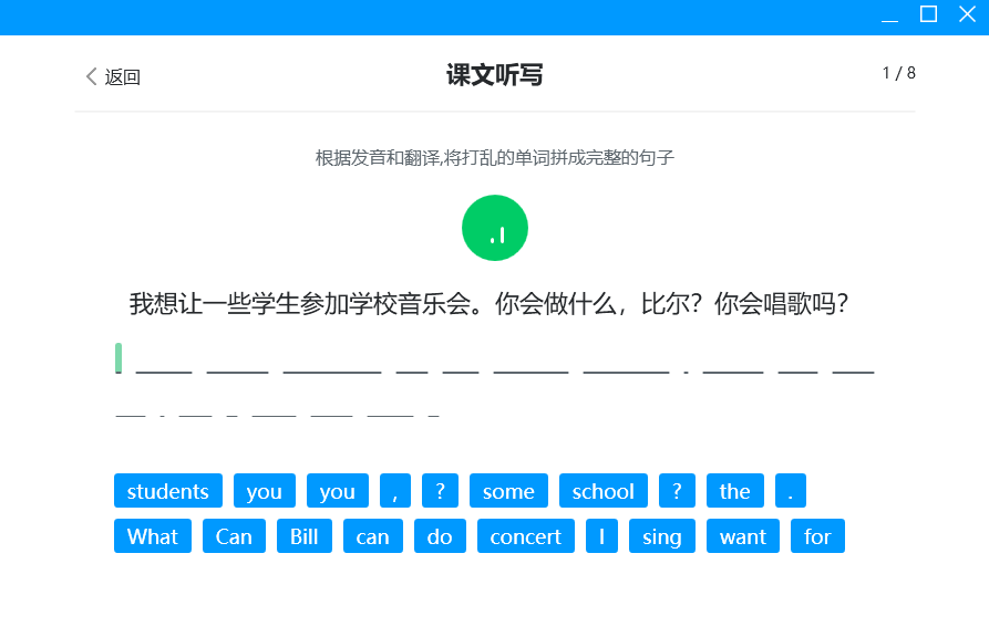 集成单元单词学习系统,支持跟读、测试和听写,采用科学记忆法强化词汇掌握。