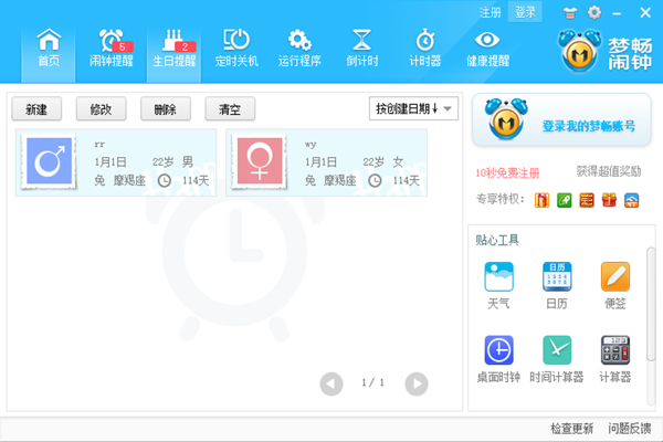 生日提醒贴心:支持农历生日提醒,可添加家人、朋友等多人的生日信息,还能设定头像,用以区分不同人的生日,避免忘记重要人物的生日。