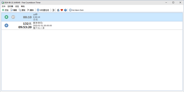 Free Countdown Timer电脑版是一款功能强大的倒计时软件,Free Countdown Timer客户端可以同时设置多个倒计时计时器,适用于不同的任务或活动,每个计时器独立运行,互不干扰,每个计时器都有独立的设置界面,用户可以分别进行名称、时间和提醒方式的设置。