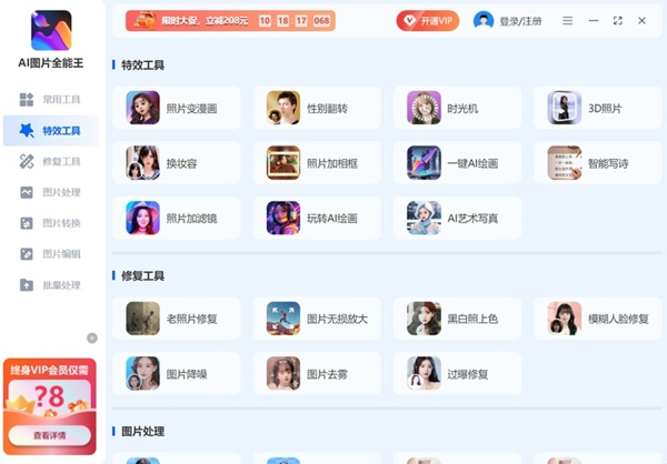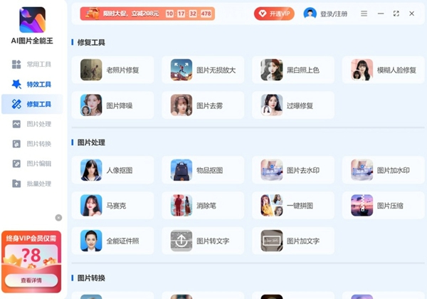 AI图片全能王软件能够智能地为黑白照片上色,将历史照片转化为更加生动、丰富的彩色影像,重现过去的色彩与情感。