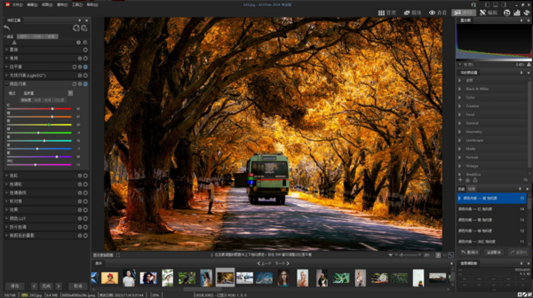 内置曲线、色阶、HSL、降噪、锐化等专业调色工具,支持局部修图、污点修复、裁剪矫正;部分版本搭载 AI 增强功能,可自动优化曝光、修复模糊、提升画质,兼顾专业度与易用性。