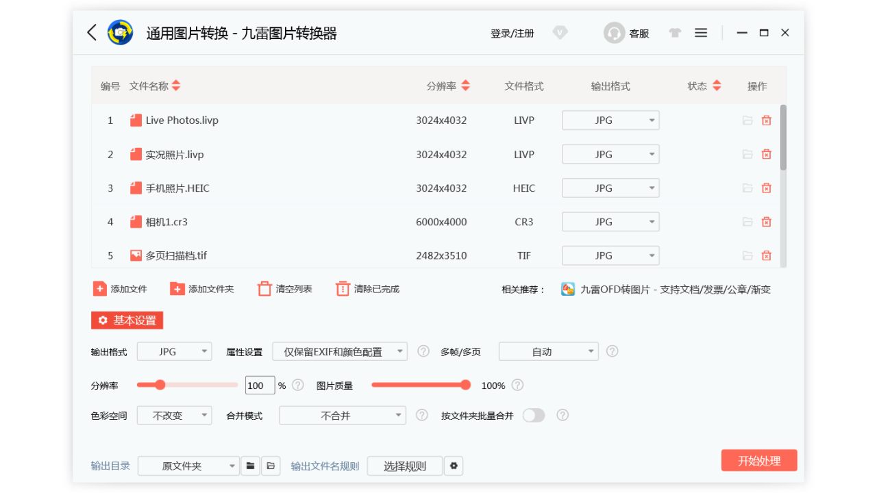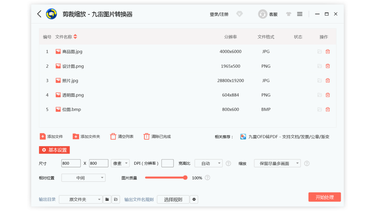 九雷图片转换器有着非常强大的转换功能,在转换的时候可以直接使用批量文件的转换,这样就无需用户一个一个进行转换了,并且该软件转换后的文件排版以及内容都不会改变,非常强大。