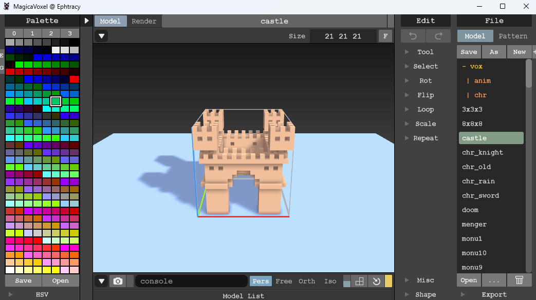MagicaVoxel是一款非常强大的像素建模软件,MagicaVoxel中文版之中,用户可以随意使用软件之中的工具,帮助与用户可以轻松建造一个数据自己的像素图像,该软件不仅仅是能建造2d像素小模型,还能建造3D模型。