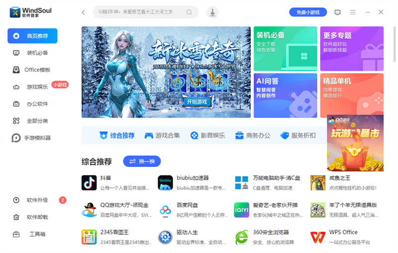 软件安装:支持高速资源下载,提供便捷的软件安装功能,用户可以通过分类查找或搜索功能快速找到自己需要的软件,点击安装按钮即可轻松将软件下载安装到电脑,还支持多个软件无人值守安装。