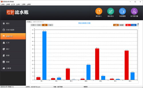 多元统计洞察收支:用智能算法按日、周、月、年等维度统计收支数额,以图表展示消费、收入项目的频率分布占比,助用户掌握资金流向。
