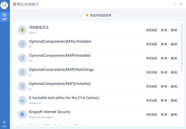 珊瑚启动项助手软件提供自动分析启动项,并提供相关程序的信息和描述,帮助用户了解每个程序的功能和作用,避免误删重要程序。