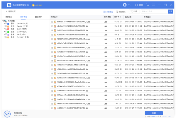 烁光数据恢复大师内置了极为高效的搜索算法,一旦启动扫描,便能迅速且深入地对磁盘进行全方位 “排查”。