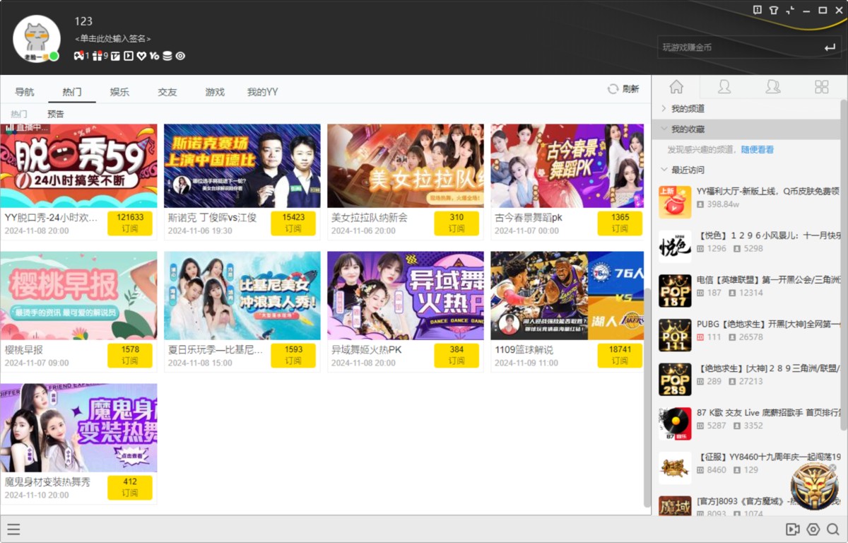 在公会首页方面,公会活动使得公会发起、组织和管理活动变得更加轻松。将公会管理和应用中心融入 YY,让公会管理更加便捷高效。频道权限可以自定义,这使得马甲权限的设置更加灵活多变,极大地降低了管理风险。若公会想要发展壮大,就需要众多管理员。权限自定义功能能够让公会管理员各尽其责,共同协作管理公会,此功能也是众多公会最为期待的。此外,YY 实现了自选高音质功能,所有频道都可以根据自身需求自行开通高音质。YY 再次全面升级,让每一个公会都能尽情畅享嗨歌娱乐,同时也能确保游戏玩家的语音清晰流畅。