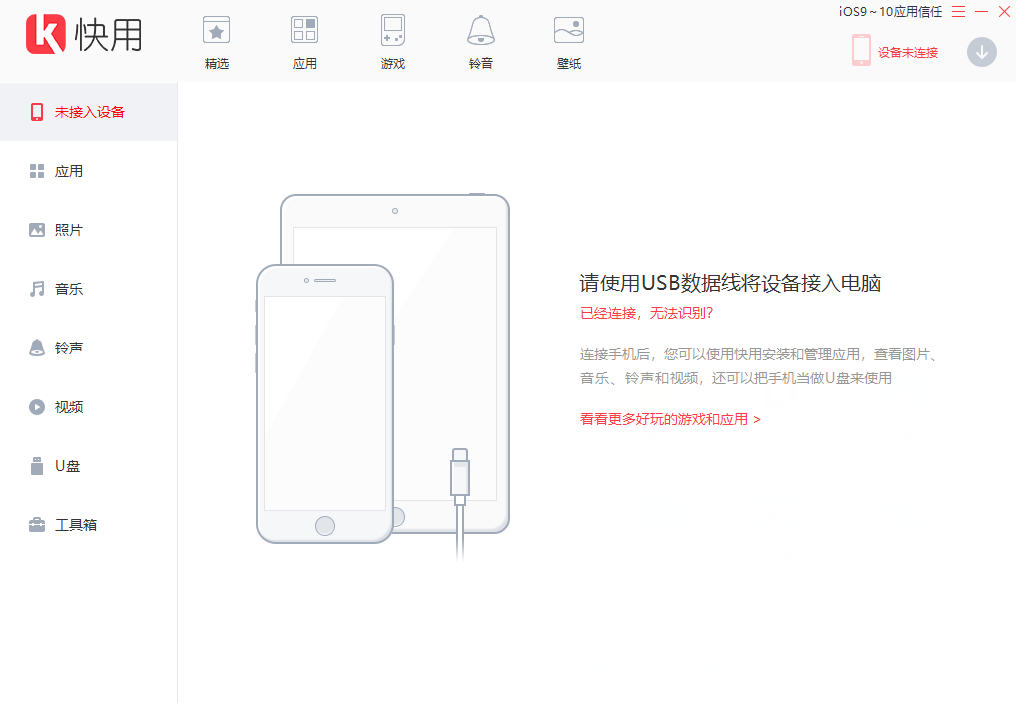 快用苹果助手是一款非常强大的iOS应用下载工具,快用苹果助手可以直接帮助用户使用电脑来连接苹果手机,该软件可以直接在电脑上下载各种应用,无需用户通过商店才能下载内容,大大增加了用户的可选择性。