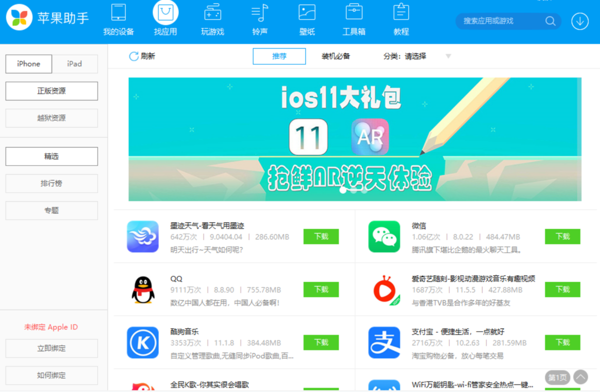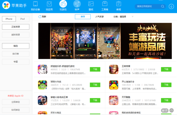 在资源获取上,新版苹果助手 PC 端堪称 “移动资源宝库”。无需依赖手机流量,只需连接电脑,即可一键下载海量优质应用。