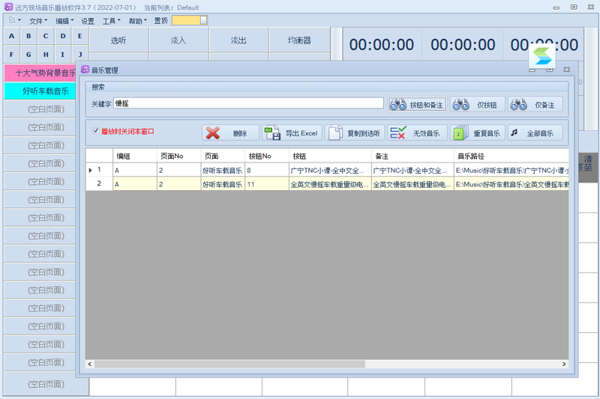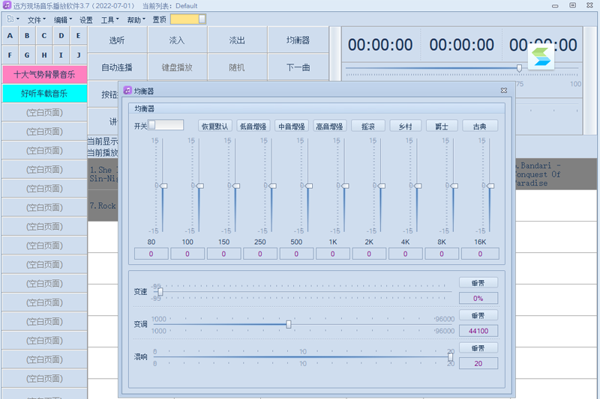 丰富的播放功能:支持单曲播放完自动停止、多首乐曲同时播放等多种播放模式,还具备淡入淡出(包括淡入、淡出、交叉淡入淡出)功能,可自由设定乐曲播放快捷键,方便现场操作。