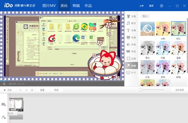 优酷iDo软件内置大量的音乐、滤镜、特效、字幕和动画效果,用户可以根据需要添加,提升视频的质量和创意。