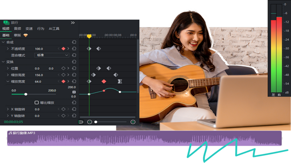 搭载 AI 超清画质功能,可无损将视频升级至 4K 并修复老旧素材;AI 运动跟踪能自动锁定动态目标,让文字、特效与画面精准同步,无需手动设置关键帧,大幅降低编辑难度。
