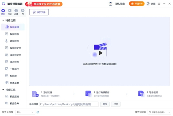 界面简洁直观,功能分区清晰,核心操作流程简化,无需专业知识,几步就能完成视频剪辑与美化。