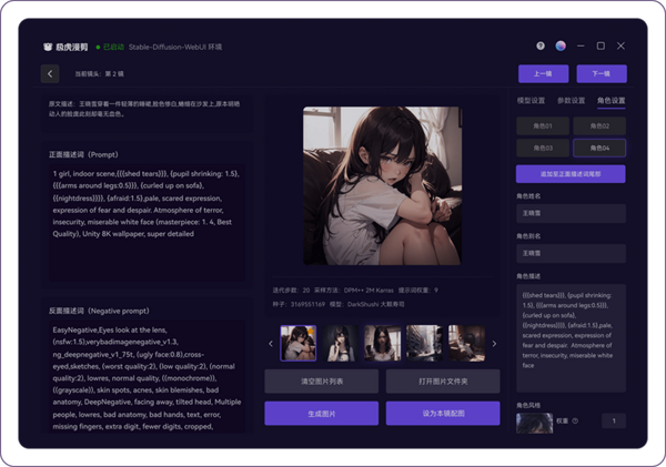 自定义性强:支持对 SD 各类模型进行自定义调整,用户可根据小说情节和个人创意,选择不同模型并对单镜头绘图内容精细调整。