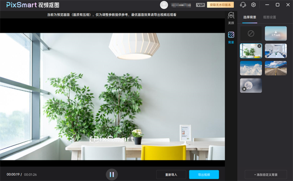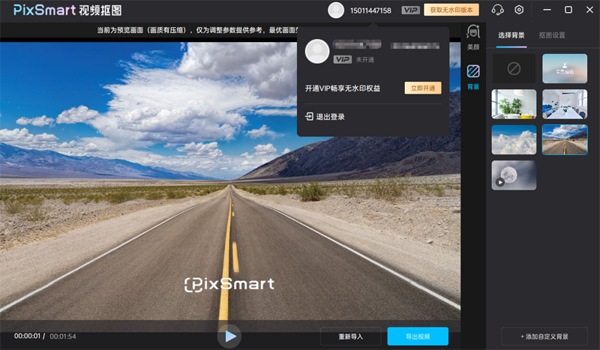 PixSmart视频抠图美化电脑版是一款功能丰富且智能的视频编辑软件,PixSmart视频抠图美化最新版,能够精准识别视频中的人物或物体,并智能去除背景,替换为自定义的背景图像或视频,可以让用户轻松编辑视频,提升视频质量,制作出更加精致与专业的视频内容。