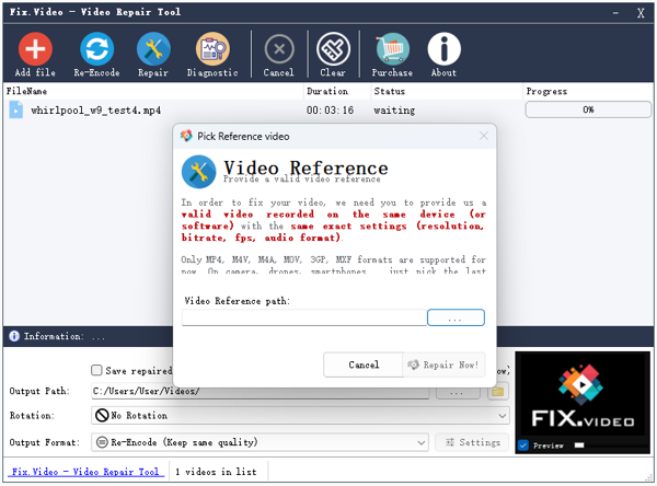 Video Repair Tool电脑版是一款高效易用的视频文件修复工具,提供专业的视频损坏或数据损失,Video Repair Tool最新版能够修复播放失败、视频画面损坏等多种常见的视频文件损坏问题,严重损坏的视频文件修复可能有限,但一般的文件还是没有问题的。