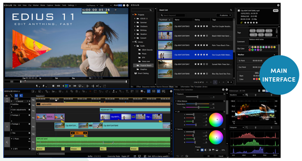 EDIUS电脑版是一款简单高效的视频编辑软件,EDIUS最新客户端支持多轨道编辑,可以同时处理多个视频和音频轨道,用户能够更加灵活地进行音视频素材的排列与编辑,还提供丰富的实时特效和过渡效果,支持3D效果、色彩校正、图像处理等功能。