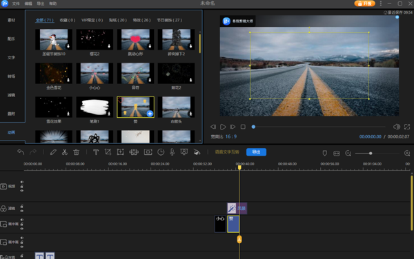 提供大量转场特效、滤镜、动画贴纸、标题模板和背景音乐(BGM)库,用户可以直接调用,快速提升视频的观赏性和专业度。