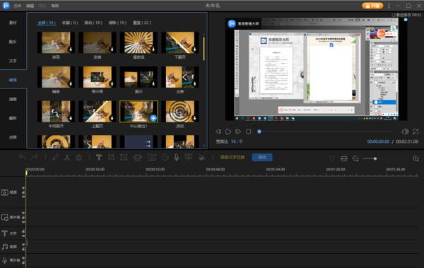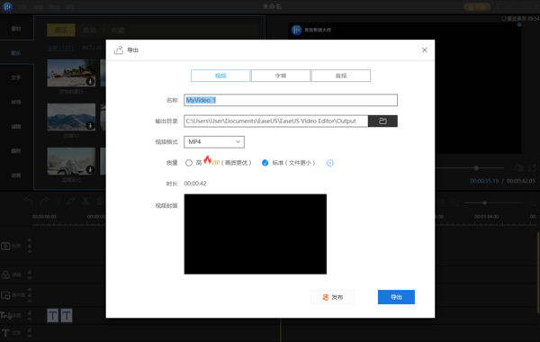 易我剪辑大师软件提供多种音效、过渡、字幕模板、动画等素材,帮助用户丰富视频内容,轻松调节视频音频的音量,去除杂音,或者替换视频中的音频。