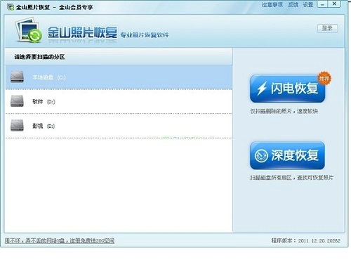 金山照片恢复软件可以根据数据丢失的情况选择合适的扫描方式,快速扫描适合轻微丢失的文件,而深度扫描能够深入扫描硬盘,找回那些被误删除、格式化或损坏的文件。