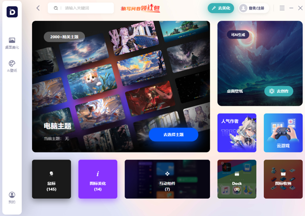 除了自主创作,软件还提供超多现成主题,支持一键应用,帮选择困难症用户快速搞定桌面美化,无需花费时间反复调试。