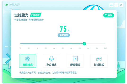 猎豹护眼大师软件可以根据用户的需求和环境光线自动调整屏幕亮度,避免因光线过强或过弱而导致的眼睛不适。