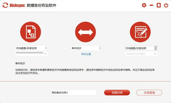 Disksync软件提供直观、易于使用的图形用户界面,所有同步任务、设置选项一目了然。