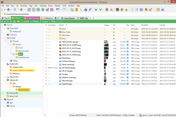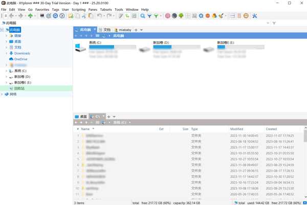 XYPlorer软件支持双窗格视图,方便用户能够在一个窗口中同时查看和操作两个不同的文件夹,方便文件的拖拽和复制粘贴操作。