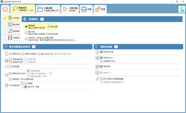 软件设有常规、图像、音频、视频四种专属扫描模式,适配不同文件的去重需求。