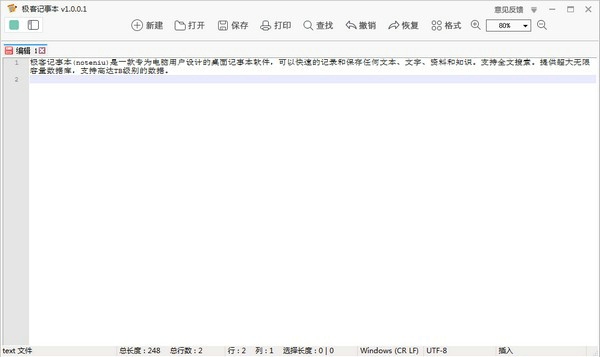 极客记事本电脑版是一款专为电脑用户设计的高效桌面记事本软件,极客记事本PC最新版支持快速录入文字,让用户能够迅速记录下灵感、想法或重要信息,提供强大的全文搜索功能,用户可以快速找到所需的笔记内容,无论是短文本还是长篇资料,都能一键检索。