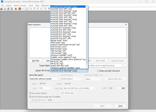 格式转换多样:支持多种 CAD 文件格式之间的相互转换,包括但不限于 DWG、DXF、DWT、DWK、DWF、PDF、PLT、SVG 等。