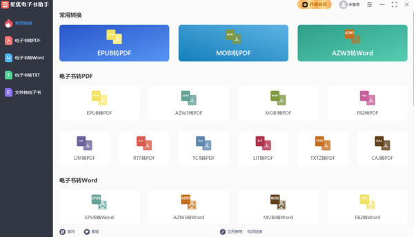 功能全面实用:软件主要有电子书转 PDF、电子书转 Word、电子书转 TXT、文件转电子书这四大功能,既可以把电子书转成常见文档格式,也能实现不同电子书格式间的相互转换。
