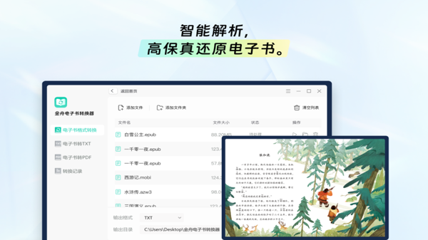 金舟电子书转换器软件能够根据不同的电子书类型自动调整格式内容,文本排版、图片、目录等信息在转换后的文件中得到良好的保留,提升阅读体验。