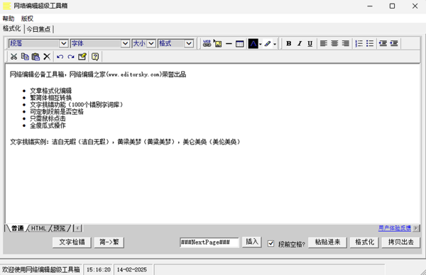 网络编辑超级工具箱电脑版是一款功能强大的网络编辑和排版工具,网络编辑超级工具箱PC免费版支持多种文件格式的内容编辑,快速制作和修改网页文本,提供直观的可视化编辑器,支持拖放操作,便于用户进行页面布局和内容排版。