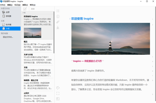 Inspire电脑版是一款功能全面且用户友好的写作辅助软件,Inspire客户端能够帮助作者、学生和创作者提高写作效率与灵感,内置灵感存储和管理,用户可以随时记录突发的创意和想法,集中管理自己的创作灵感,提升写作的连贯性,支持自动保存,轻松应对各种突发情况。
