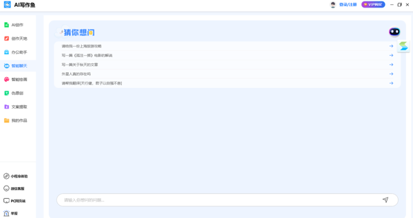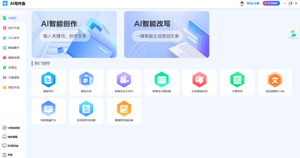 AI写作鱼电脑版是一款功能强大的智能写作软件,AI写作鱼PC最新版能根据关键词和主题自动生成高质量的原创文案,可以根据自己的需求进行自定义设置,调整文章的风格、语气和长度等,轻松生成符合特定需求的文本内容,让写作变得更加轻松和高效。