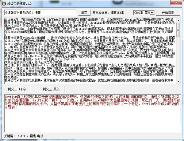 超级自动摘要电脑版是一款专为文章自动摘要设计的工具,超级自动摘要最新版能够根据文章内容自动提炼出核心信息,用户可以根据需要设定摘要的长度、重点等,可以快速获得简洁且信息浓缩的摘要,轻松生成新闻文章的摘要,帮助记者快速了解文章主旨。