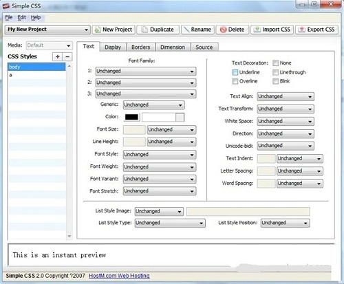 Simple CSS软件可以调整文本字体、颜色、字号、行间距等细节,也可以修改元素的边框、间距、对齐方式等。
