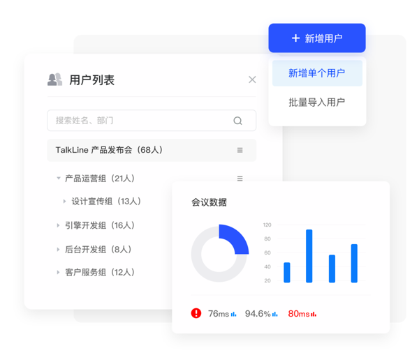 TalkLine软件提供会议数据统计与可视化展示,清晰呈现会议时长、参与人数等核心信息,方便企业管理员把控办公状态。