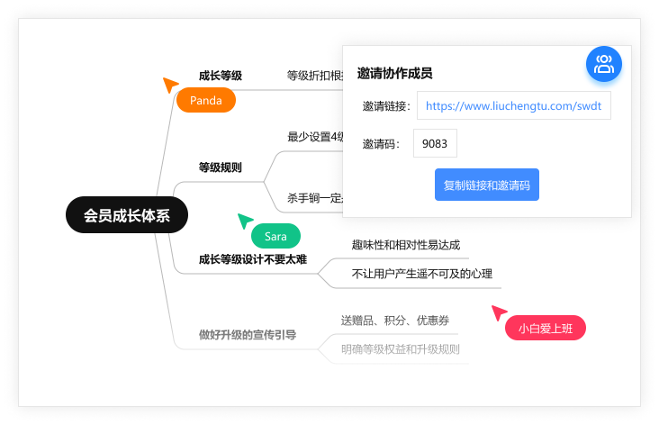 团队合作中,灵感的碰撞能催生创新火花。迅捷画图的多人实时编辑功能,如同开启一场头脑风暴盛宴。你可以为团队成员设置相应权限,让大家自由编辑思维导图。在此过程中,成员们的各类灵感瞬间便能实时汇聚,源源不断地丰富思维导图内容。在这一交互过程中,团队成员间的沟通交流更加频繁,合作也变得更为紧密、轻松且高效,有力推动项目稳步前行。